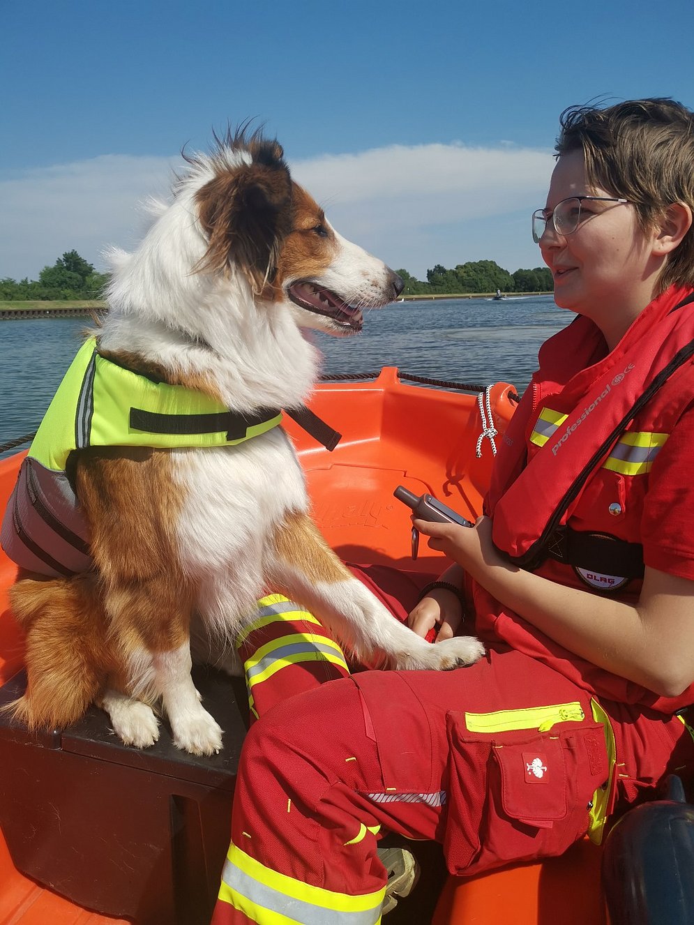 - Kooperation mit Rettungskräften: Während der Ausbildung wird auch die Zusammenarbeit mit anderen Einsatzeinheiten, wie fremden Bootsgruppen, Führungseinheiten oder Einsatztauchern geübt. Die Hunde und Menschen werden stetig auf den realen Einsatz vorbereitet, um auch unter extremen Bedingungen zuverlässig arbeiten zu können.