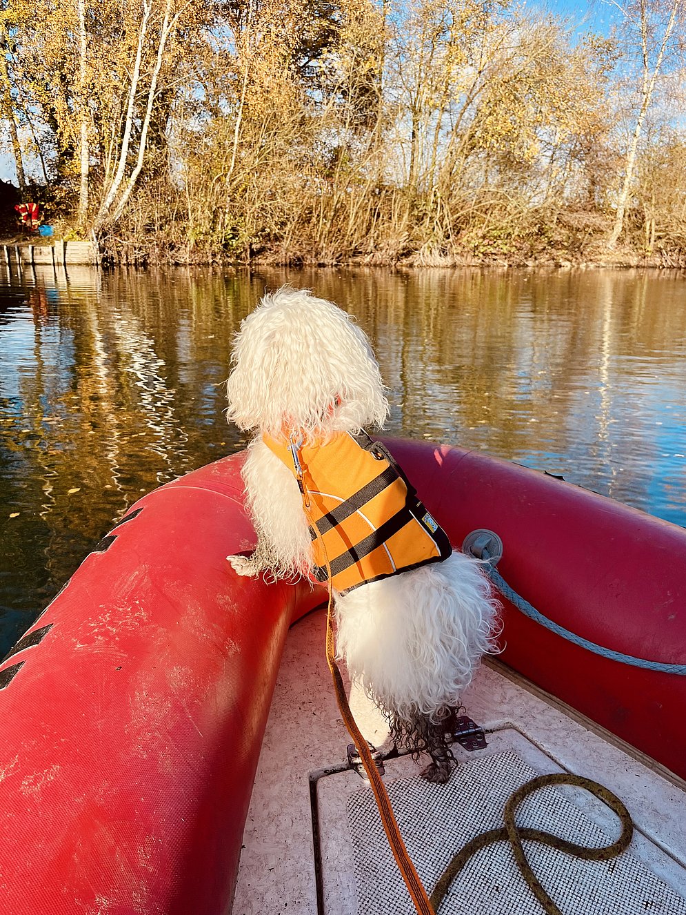 - Grundausbildung Rettungshund: Hier lernen die Hunde die menschlichen Gerüche kennen, sie zu identifizieren und darauf zu reagieren. Parallel werden sie an das Boot gewöhnt, lernen dieses kennen, ohne schon Anforderungen an eine Sucharbeit zu haben.